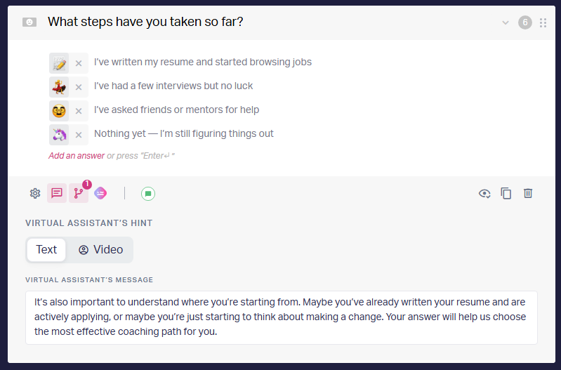 3. Ask a question — make sure that it will be clear to your client. In the hint, we recommend adding the reason for such a question, this raises the number of answers.