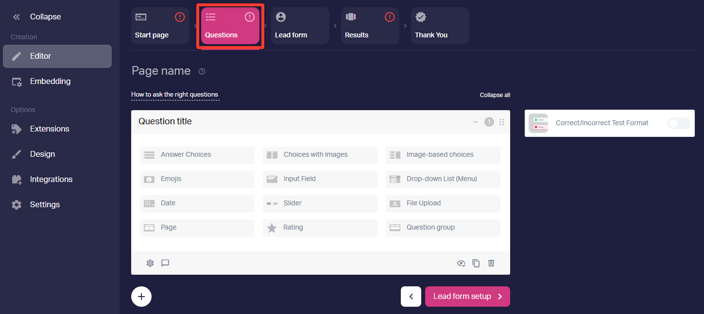 The basic version of the quiz is a set of 4-6 questions and a contact capture form.