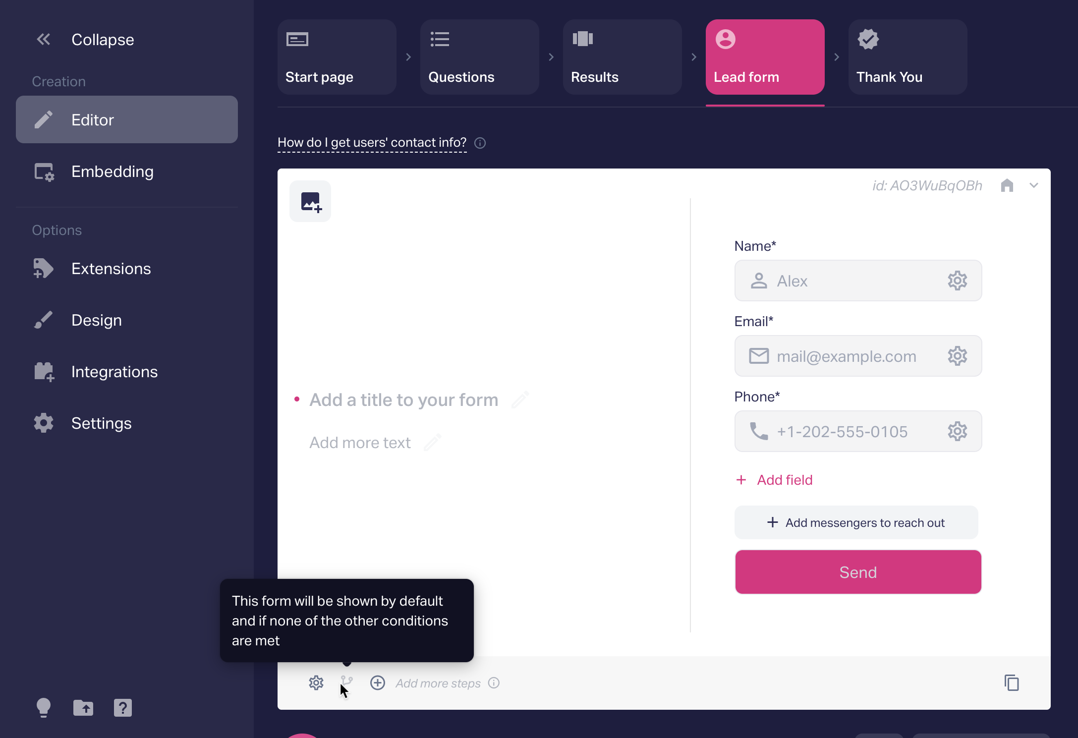 1. The lead form displayed based on Branching logic. For instance, in a quiz, visitors may have different requirements. Some may need urgent and quick solutions, while others may prefer to take their time and explore various options. There are also those who are open to leaving their phone number for a callback, and others who prefer communicating via email to gather more information.