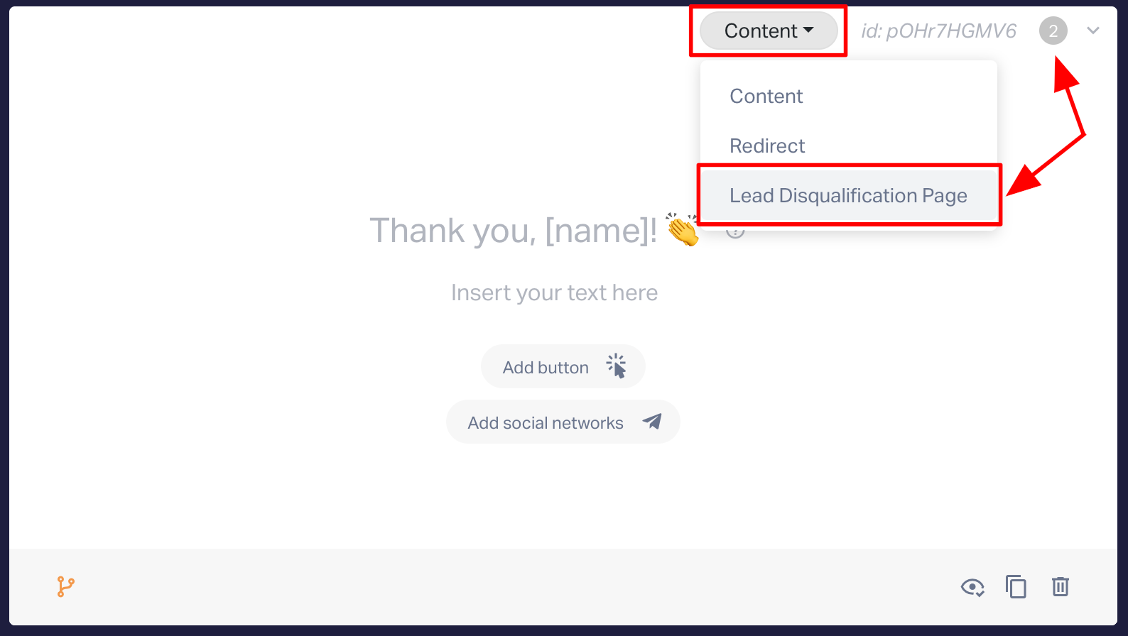 In the Thank You page settings, an additional option is available — “Lead Disqualification Page.”